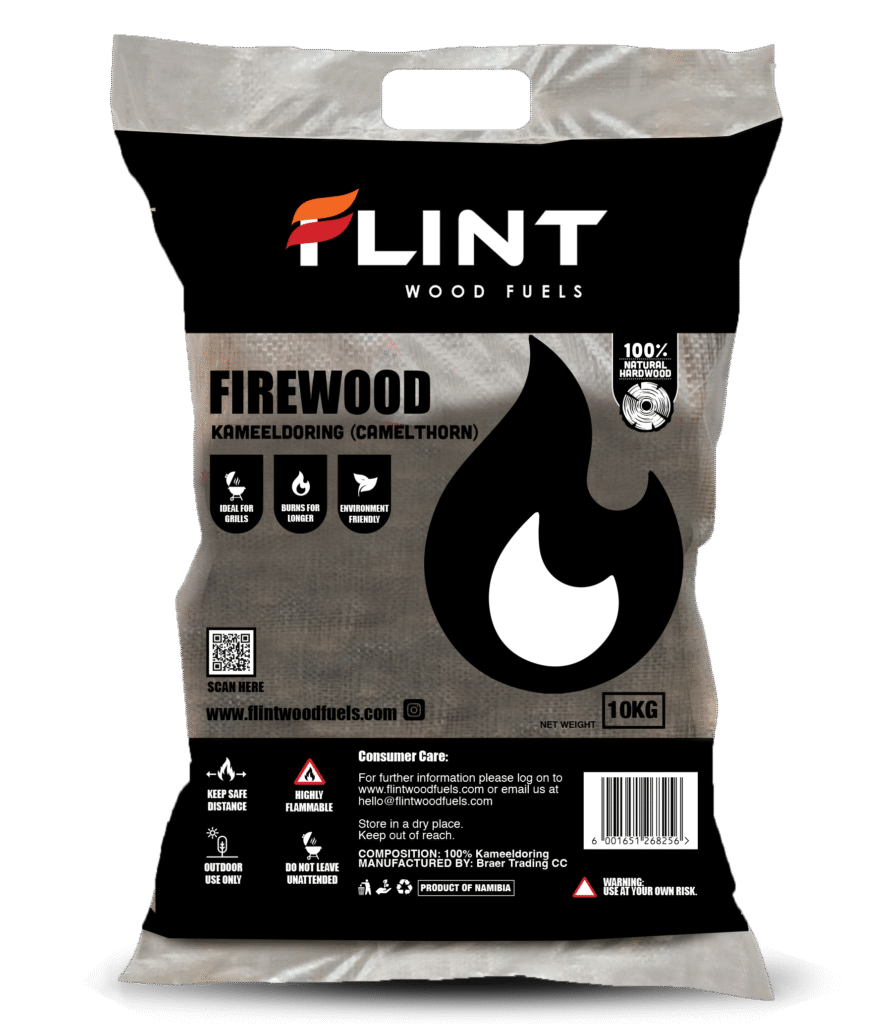 Our dedication to quality and sustainability extends into every log of our premium firewood. Sourced responsibly from the renowned Kameeldoring (Camelthorn) tree, FLINT Firewood offers a slow-burning, high-heat experience that’s as dependable as it is environmentally conscious. Whether you’re gathering around a cozy firepit or preparing a traditional open-flame meal, this dense hardwood delivers consistent performance and a rich, aromatic burn that elevates every moment.